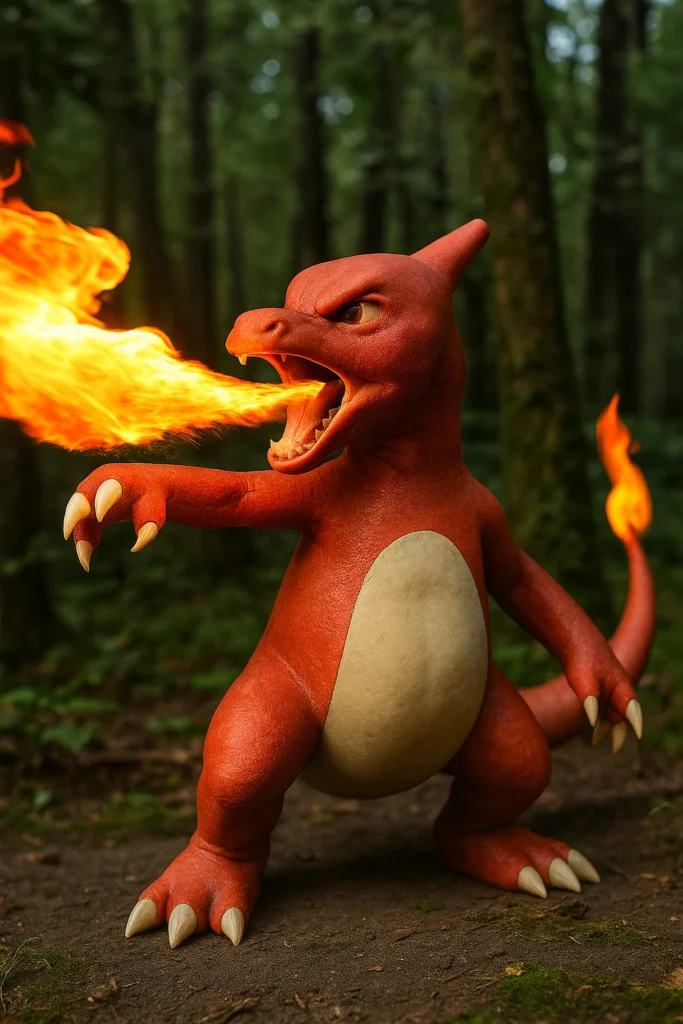 - Lanzallamas: El ataque característico de la línea evolutiva de Charmander, un potente chorro de fuego.